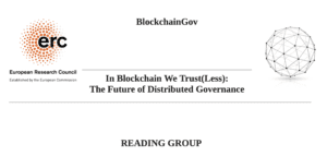 • Blockchain & LegitimacyConference Organizations, Events, Reading GroupsBlockchain & LegitimacyPromoter and co-organiser of the seminar series on “Blockchain & Legitimacy” as part of the ERC Blockchain Gov project (bi-weekly reading group, running from July to Sept 2021). [...]